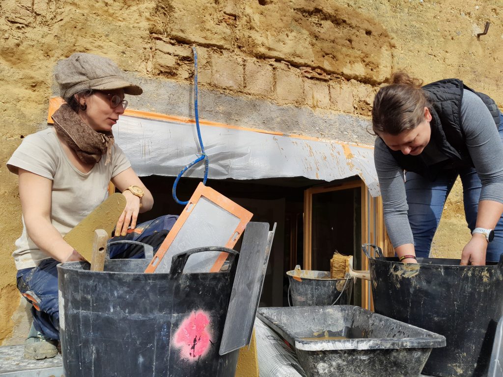 4- Formation collective / j’encadre un chantier participatif chez vous , avec vous et des bénévoles désirant apprendre les techniques appliquées sur votre chantier.